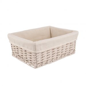 Prútený košík v béžovej farbe je potiahnutý bavlnenou látkou. Môžete …