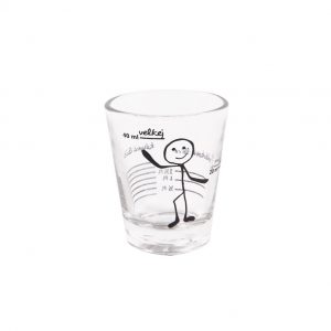 Sklenená odmerka s potlačou, odmerka je udávaná v kávových lyžičkách. …