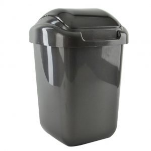 Plastový odpadkový kôš má veko v tvare kolísky. Veko stačí …