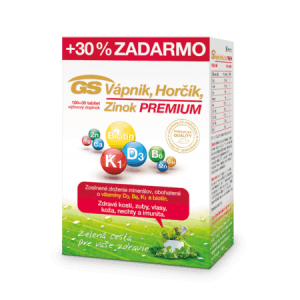 Výživový doplnok GS Vápnik, horčík, zinok Prémium obsahuje zosilnené množstvo …