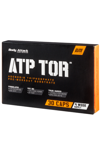 Produkt ATP TOR® predstavuje patentovaný, klinicky overený vzorec, ktorý bol vyvinutý špeciálne pre športovcov pre nárast sily. Body Attack ATP TOR® je skratka pre adenozín 5-trifosfát, telu prirodzená formula adenosintrifosfátu (ATP). ATP je tiež označovaný ako bunkové palivo alebo “benzín pre svaly”. V energetickom metabolizme môže byť ATP vyrobený zo sacharidov, bielkovín, tukov a kreatínu. A však zásoby ATP vo svaloch sú obmedzené, takže ATP musí byť opakovane syntetizovaný alebo dodávaný z vonka stravou. ATP TOR® – patentovaná formula, ktorá sa dobre vstrebáva do organizmu, môže zvýšiť hladinu ATP a nepriamo podporovať produkciu ATP vo svalových bunkách.