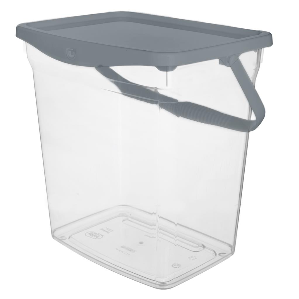 Zásobník pre uskladnenie pracích práškov či iných sypkých materiálov. Zásobník má objem až 6 l. Má plastové veko a držiak pre ľahšie prenášanie. Materiál: plast. Rozmery: 23x18x24 cm.