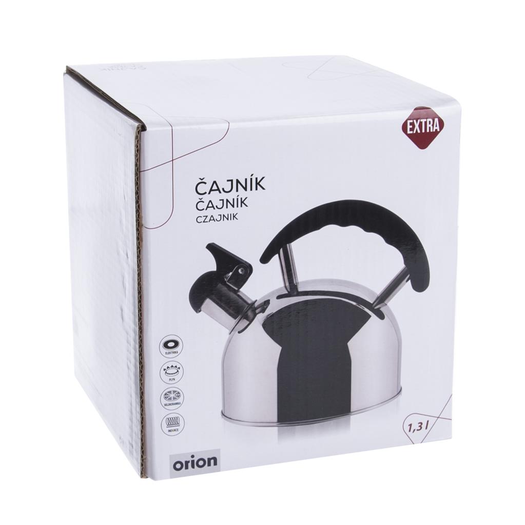 Moderný čajník v luxusnom prevedení, je vhodný na zohriatie vody na kávu alebo čaj. Hodí sa do každej modernej kuchyne. Má píšťalku, ktorá Vám ohlási vriacu vodu. Je vhodný na všetky typy spotrebičov. Aby nedochádzalo k jeho prehrievaniu, je nutné ho plniť minimálne do polovice. Materiál: nerez. Rozmery: objem 1,3 l, priemer 16 cm, celková výška 17 cm.