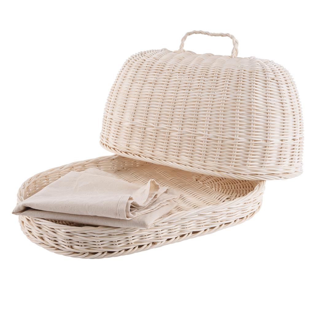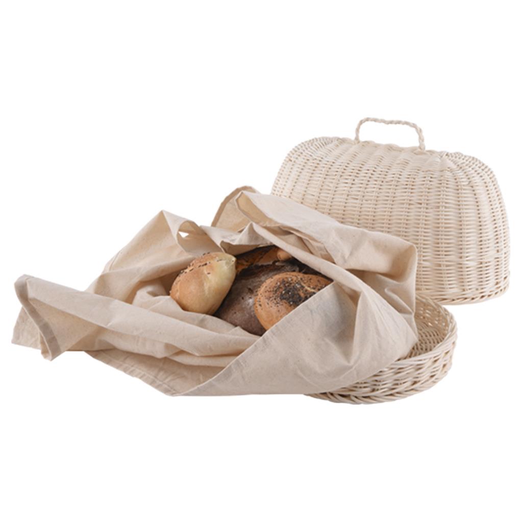 Chlebník z pleteného ratanu splní funkciu uskladnenia chleba či pekárneských výrobkov, aby zostali vždy čerstvé a neosychali. Zároveň budú chránené pred hmyzom či nečistotami. Doplnok do domácnosti, ktorý nikdy nebude nadbytočný. Plní i funkciu podnosu na servírovanie – jednoducho odklopte veko a podávajte. Súčasťou chlebníka je textilná utierka na zabalenie pečiva. Chlebník sa ednoducho sa čistí, jemne ho pretrite vlhkou handričkou alebo použite jemnú kefku. Utierku možno prať v práčke. Materiál: ratan, bavlna. Rozmery: 40x25x22 cm, utierka 70×70 cm.