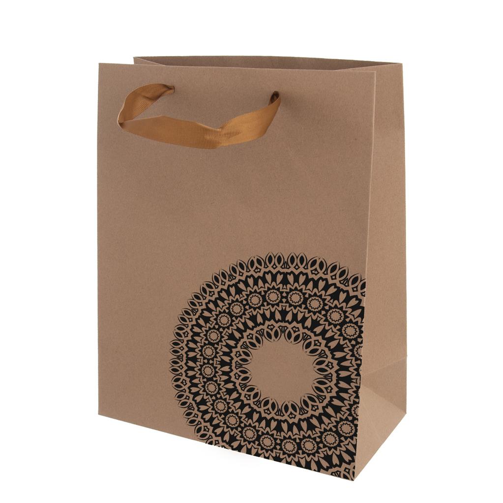 Papierová darčeková taška Vám skvelo poslúži ako obal na darčeky. Je vyrobená z pevného papiera a preto vydrží aj väčšie záťaže. Materiál: papier. Rozmery: 26×12,5×32,5 cm.