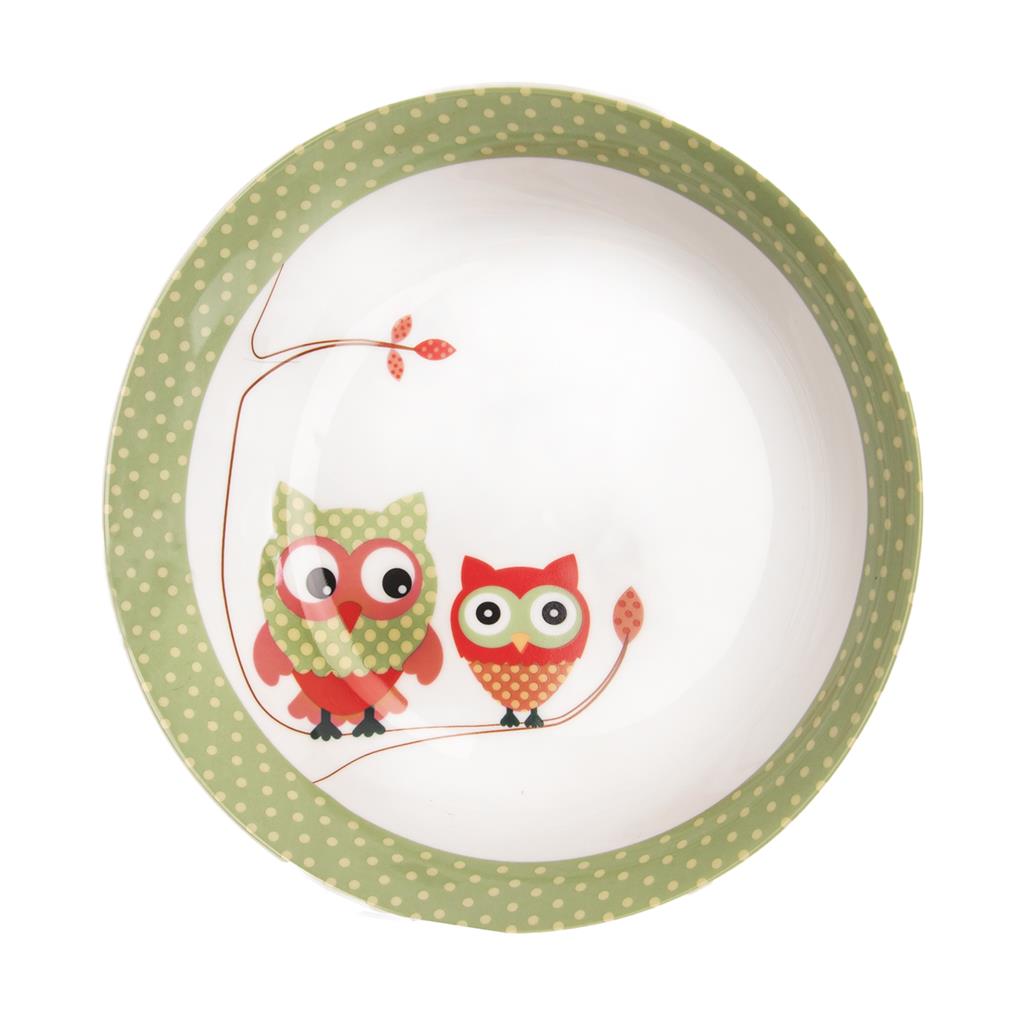 Hlboký tanier s obrázkom sovy, na servírovanie pokrmov pre deti.
