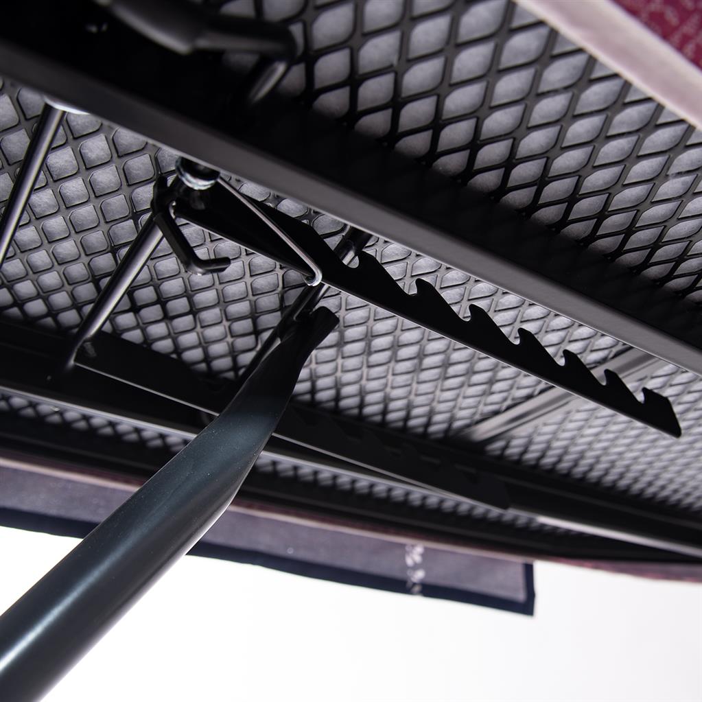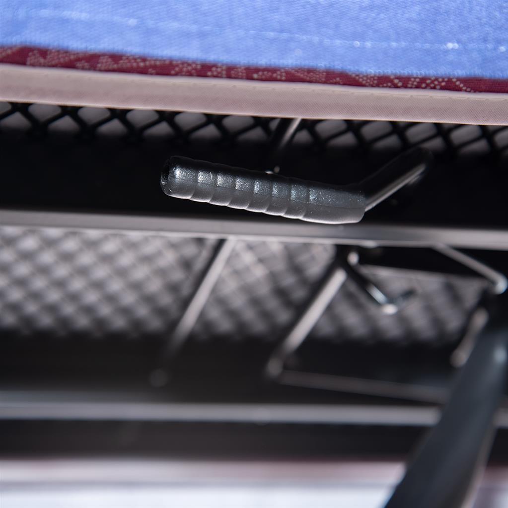 Kvalitná žehliaca doska s priestrannou žehliacou plochou a odkladacou plochou na žehličku. Polohovateľná až v 7 úrovniach. Súčasťou je bavlnený poťah na žehliacu plochu.