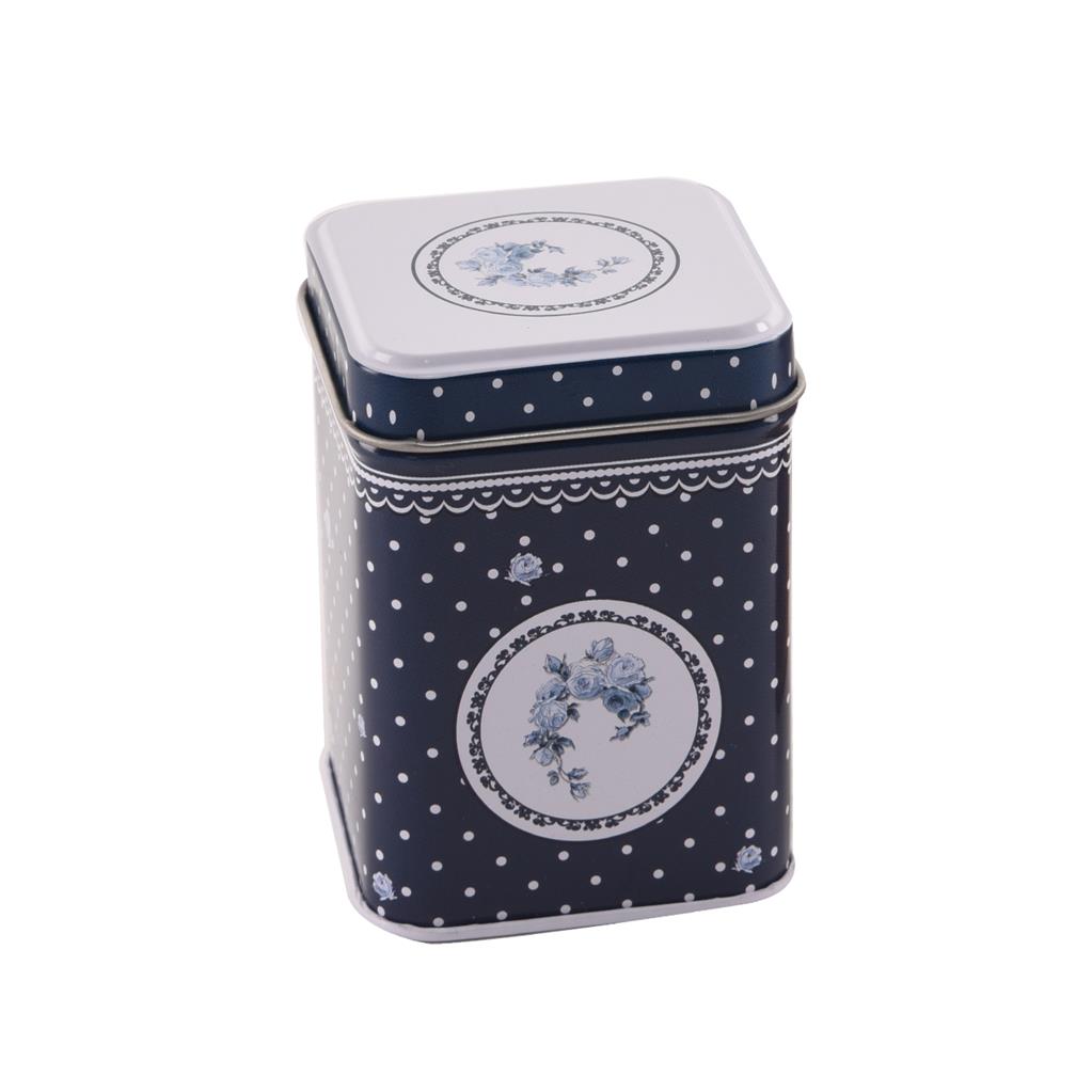 Roztomilá dóza s vrchnákom s motívom bielych bodiek spoľahlivo schová drobnosti a poslúži i ako darčekový obal. Aj malá drobnosť ukrytá v nej ako darček poteší dvojnásobne. Materiál: plech. Rozmery: 6x6x8,5 cm.