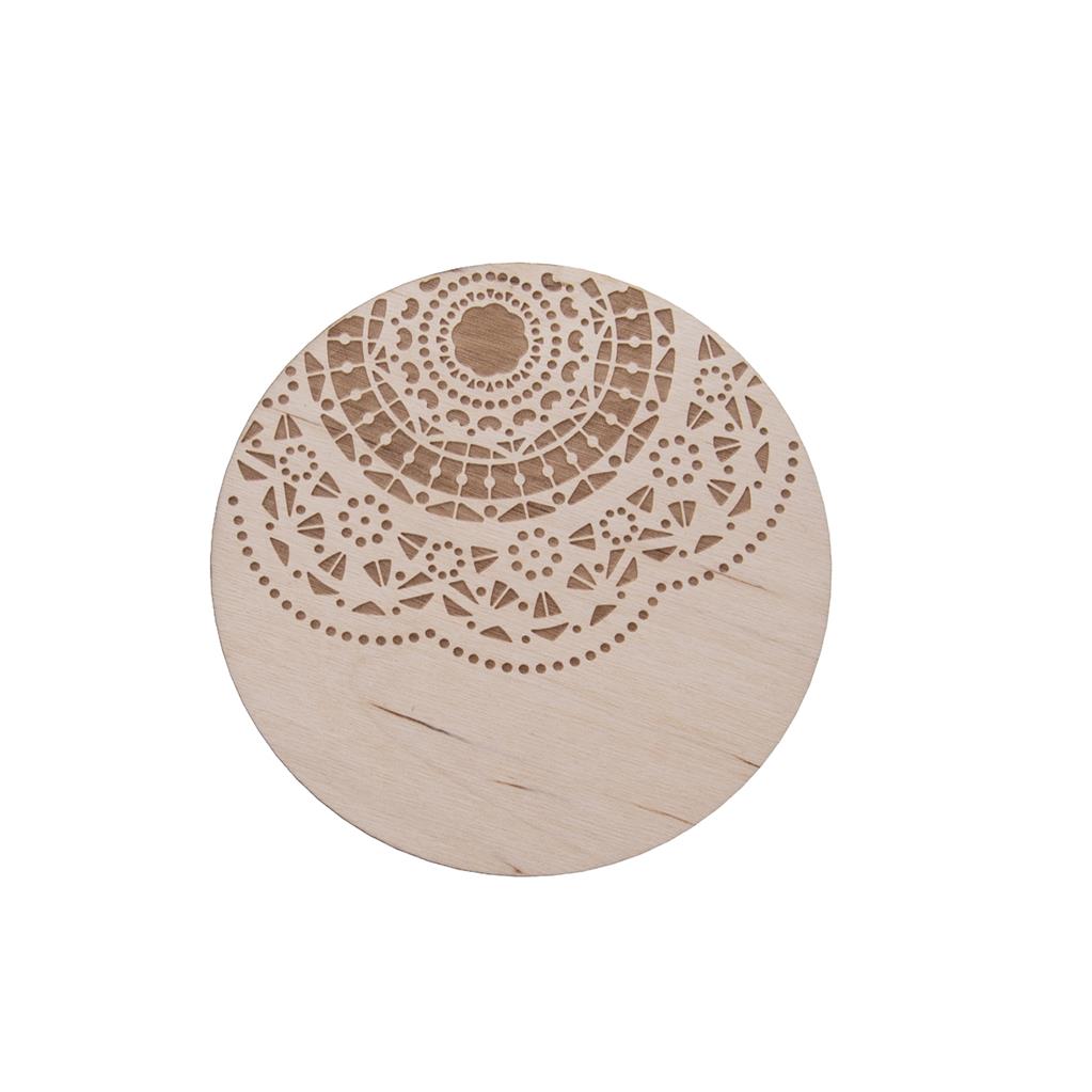 Odporučiť Originálna dekoratívna podložka s motívom mandaly. Vhodná k prestieraniu pod horúci nápoj alebo sviečku. Originálny darček pre vašich blízkych. Materiál: drevo. Rozmery: 12×0,03 cm.