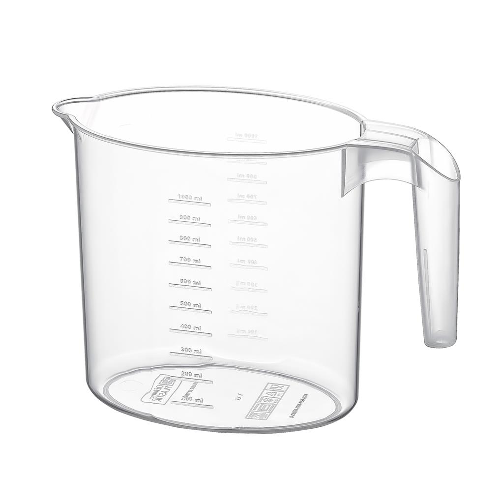 Džbán s výlevkou a odmerkou vhodný na teplé aj studené nápoje. Materiál: plast. objem 1 l rozmery 19x10x14,5 cm