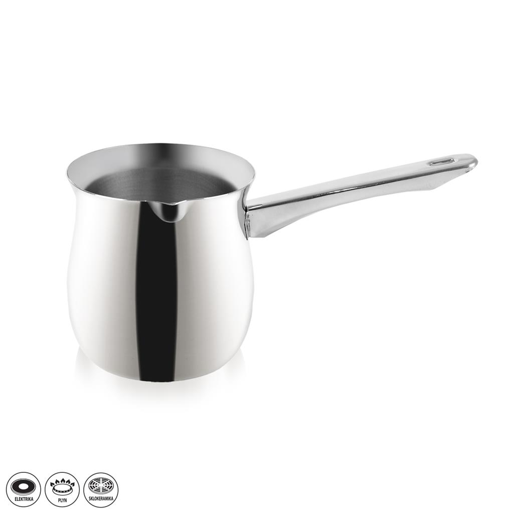 Džezva s nerezovou rukoväťou je výborným pomocníkom na príravu kávy. Má rozšírený vrchný “golier”, ktorý bráni vykypeniu.
