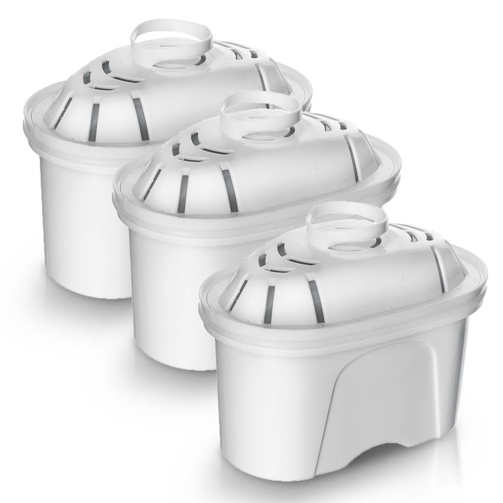 Náhradný filter do filtračných kanvíc, Vám zaručí nižší obsah vodného kameňa, a taktiež odstraňuje nežiadúce látky ako je chlór pre vychutnanie si lepšej chuti vody. Tiež pomáha redukovať ťažké kovy ako sú meď či kadmium ale aj pesticídy. Tým docielite krásnu priezračnú vodu, ktorú môžete následne použiť pri varení. Balenie obsahuje 3ks. Filter je možné použiť do kanvice: 111968, 111990, 111991. Rozmery: 10x6x7 cm.
