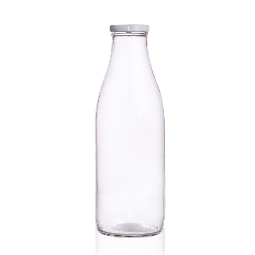 Fľaša číra,sklenená s viečkom, na mlieko, 1l