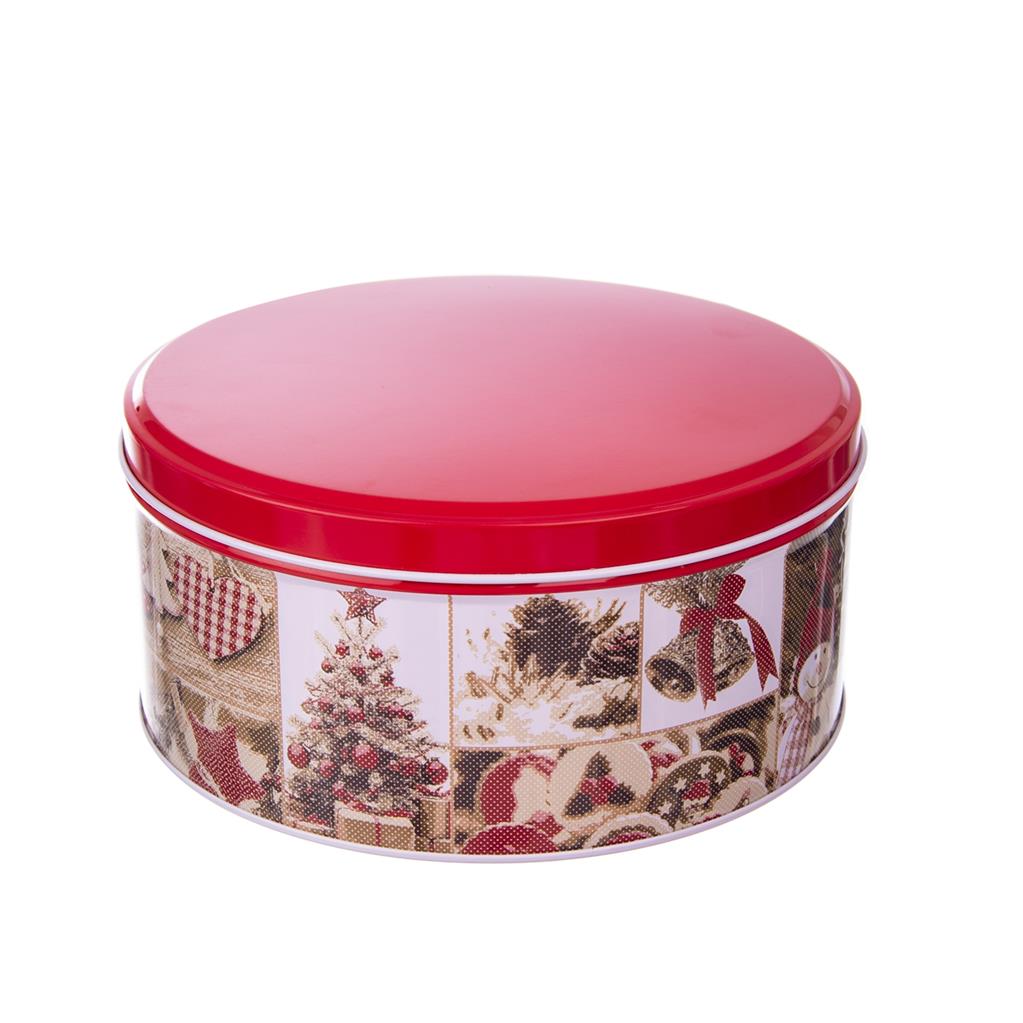 Guľatá plechová dóza s motívom VIANOCE priemer 17 cm