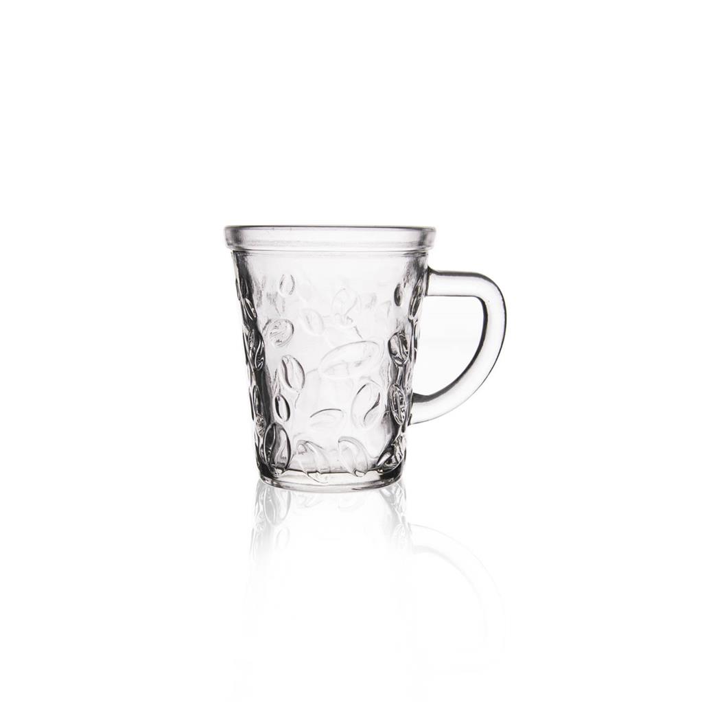 Až vám studený dážď alebo dokonca sneh vlezie pod kožu, spomeňte si, že na vás na stole čaká pohár teplého nápoja. Sklenený hrnček s plastickým dekorom kávových zrniek. Materiál: sklo. Rozmery: objem 0,07 l, 5,5×6,5 cm.