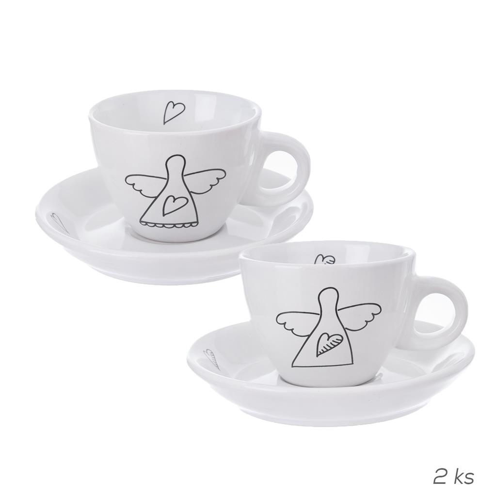 Hrnček keramický s podšálkou ANGEL, 0,09 l, 2 ks