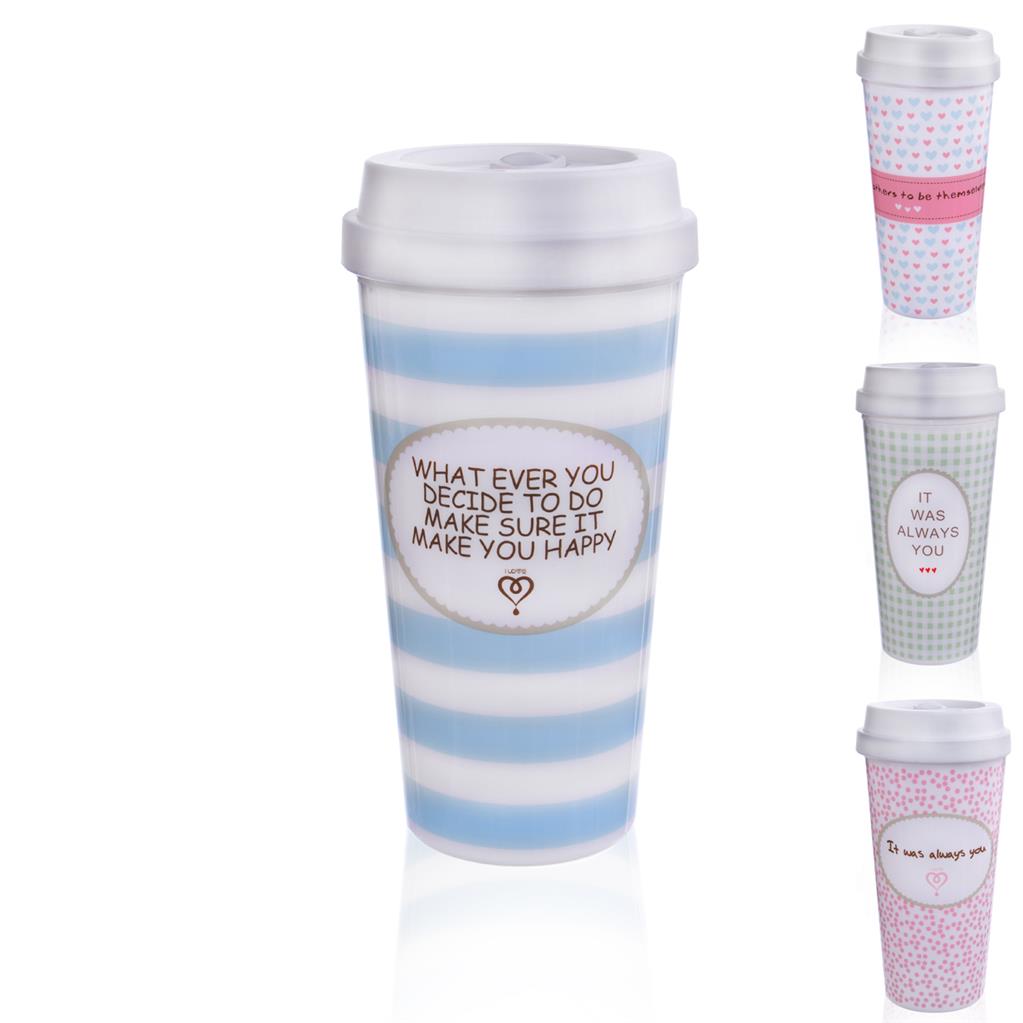 Termo pohár, ktorý udrží váš nápoj teplý alebo naopak studený. Výborný na cesty, ale aj na bežné pitie kávy alebo čaju, doma či v práci. Plastové viečko na závit, uzatvárateľný otvor na pitie. Už nezažijete sklamanie z vychladnutého čaju alebo kávy pri dlhých cestách do práce. Potešte seba alebo svojich blízkych kúpou malého, ale užitočného pomocníka. Materiál: plast – max 90 °C. Rozmery: priemer 8 cm, výška 18 cm, objem 0,5 l.