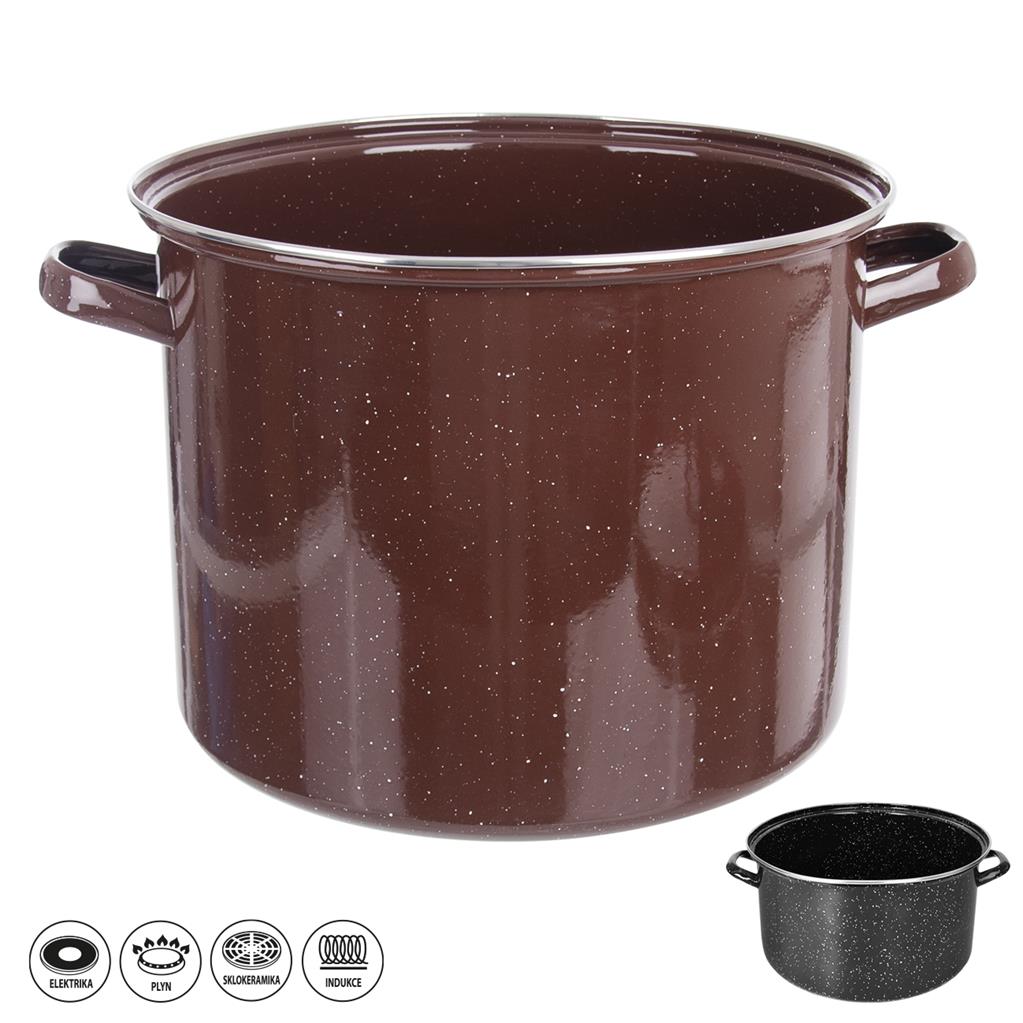 Smaltovaný hrniec ocení v kuchyni nejedna gazdinka. Rovnomerne rozvádza teplo, a vďaka svojmu objemu, v ňom pripravíte veľké množstvo pokrmu. Je vhodný na plynový, elektrický aj indukčný ohrev. Rozmery: vnútorný priemer 32 cm, priemer 35 cm, výška 26 cm, objem 20 l. Možno použiť pokrievku 113407.