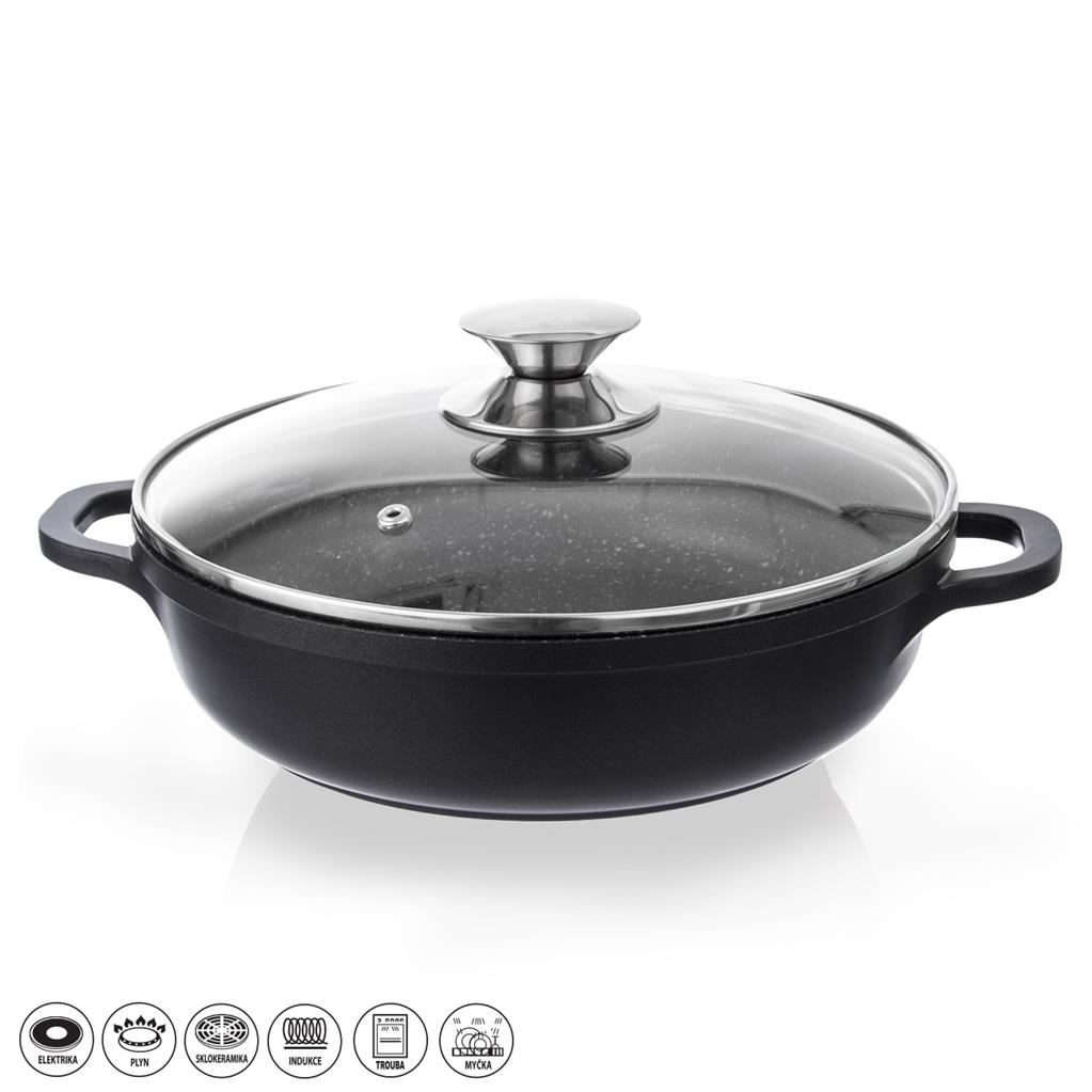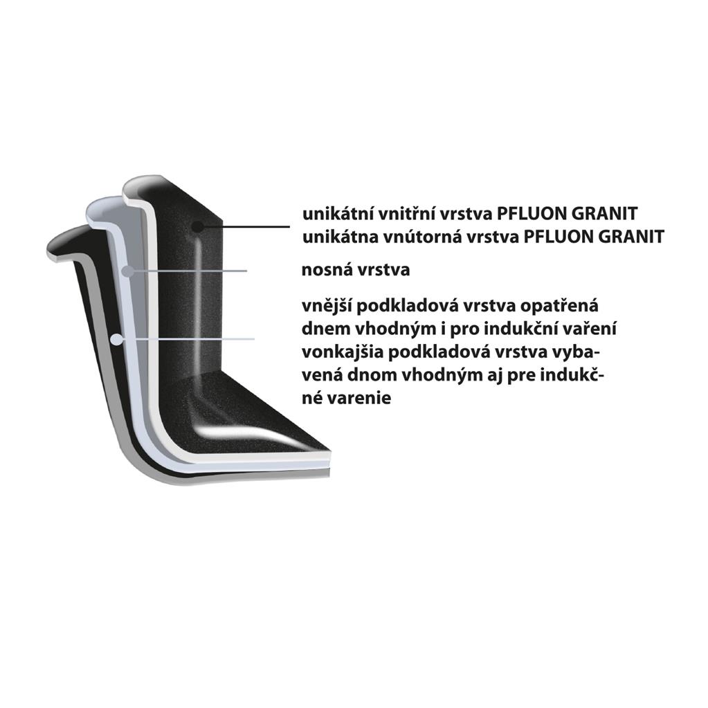 Masívny hrniec GRANDE s pokrievkou. Vďaka veľmi kvalitnému nepriľnavému povrchu PFLUON GRANIT, v ňom môžete variť, smažiť, dusiť, opekať a zapekať s minimálnou potrebou tuku.