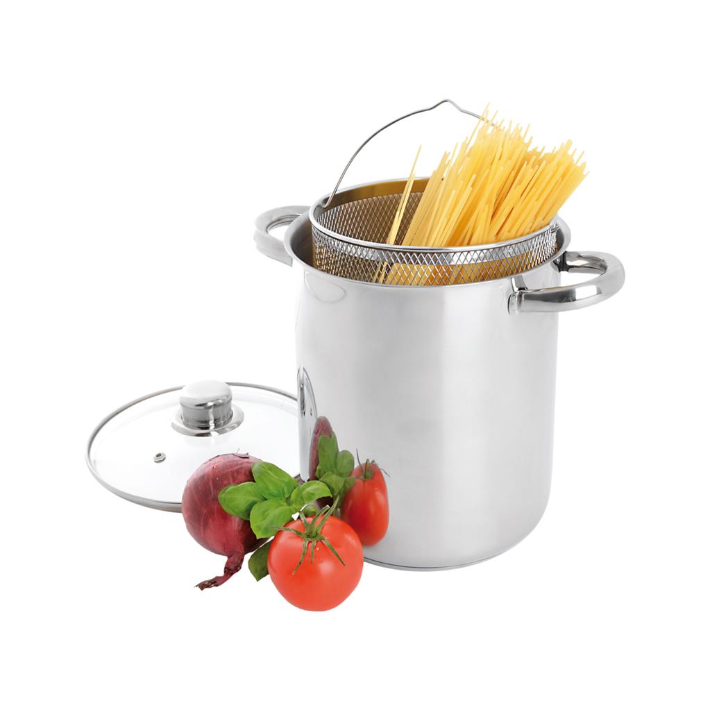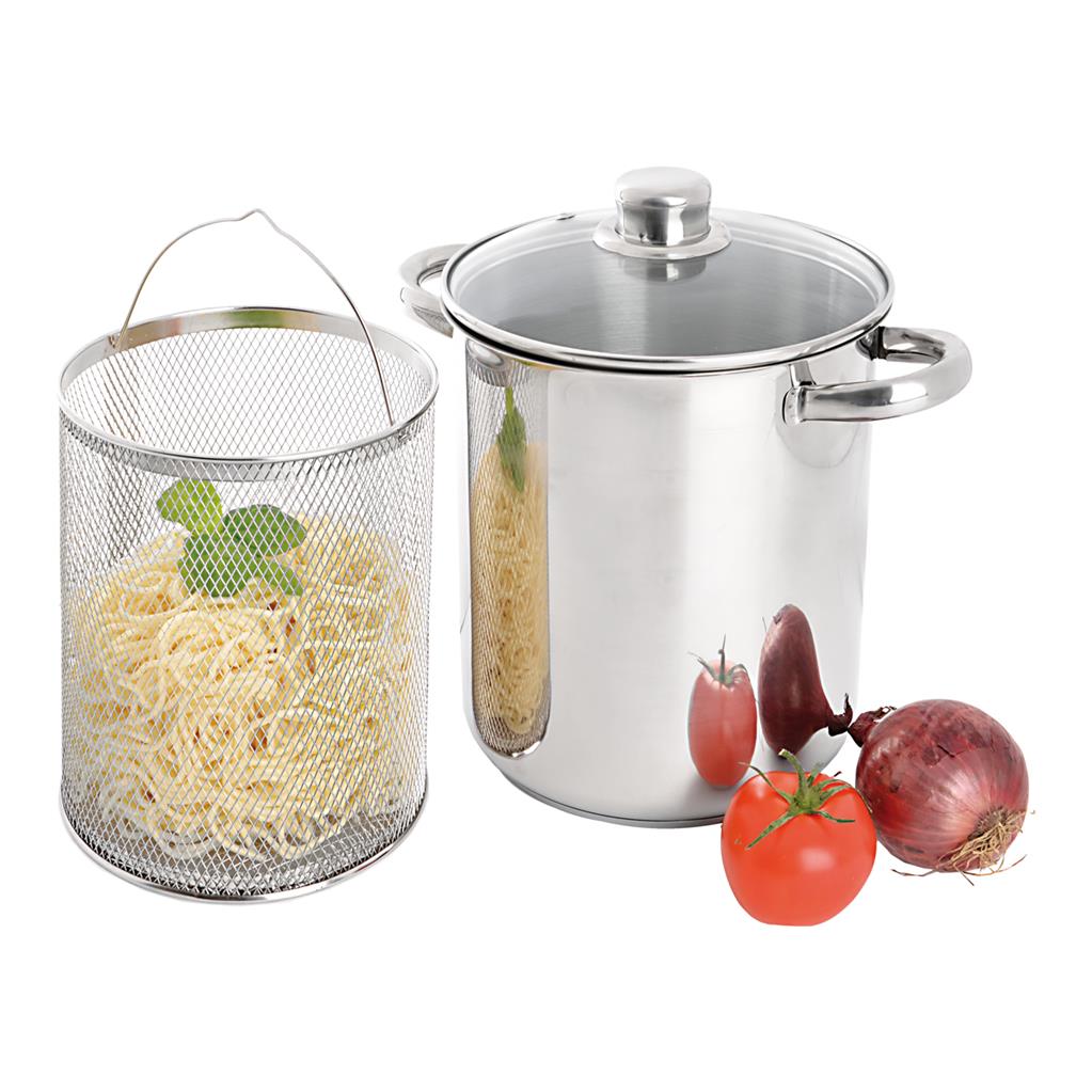 S praktickým nerezovým hrncom pripravíte jednoducho zeleninu či cestoviny. Vďaka sitku, ktoré sa nachádza priamo v hrnci, ľahko scedíte uvarené potraviny. Súčasťou je tiež pokrievka s otvorom pre únik pary. Hrniec je vhodný na všetky typy spotrebičov. Materiál: nerez. Rozmery: priemer 16 cm, výška 21 cm, objem 4,2 l.