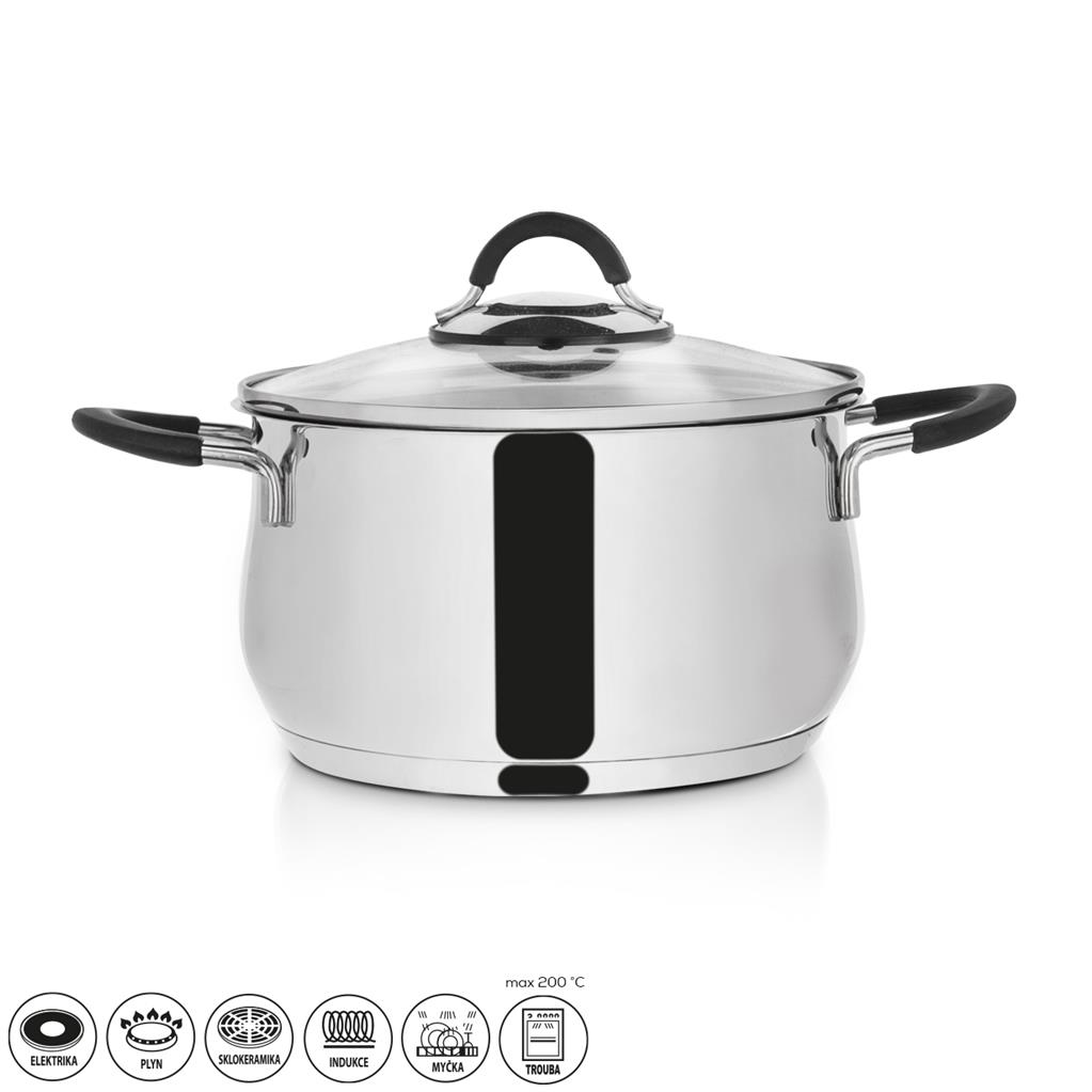 Odporučiť Hrniec nerezový so sklenenou pokrievkou a DALIE je vyrobený z kvalitného materiálu. Tradičná pomôcka pri príprave jedál overená desaťročiami. Vhodný na všetky typy spotrebičov vrátane indukcie. Vhodný aj do elektrickej rúry vyhriatej na maximálne 200 °C, bez pokrievky. Je nenáročný na údržbu, vhodný aj do umývačky riadu. Materiál: nerez. Rozmery: priemer 20 cm, výška hrnca 12 cm, výška s pokrievkou 17 cm, objem: 3,7 l.
