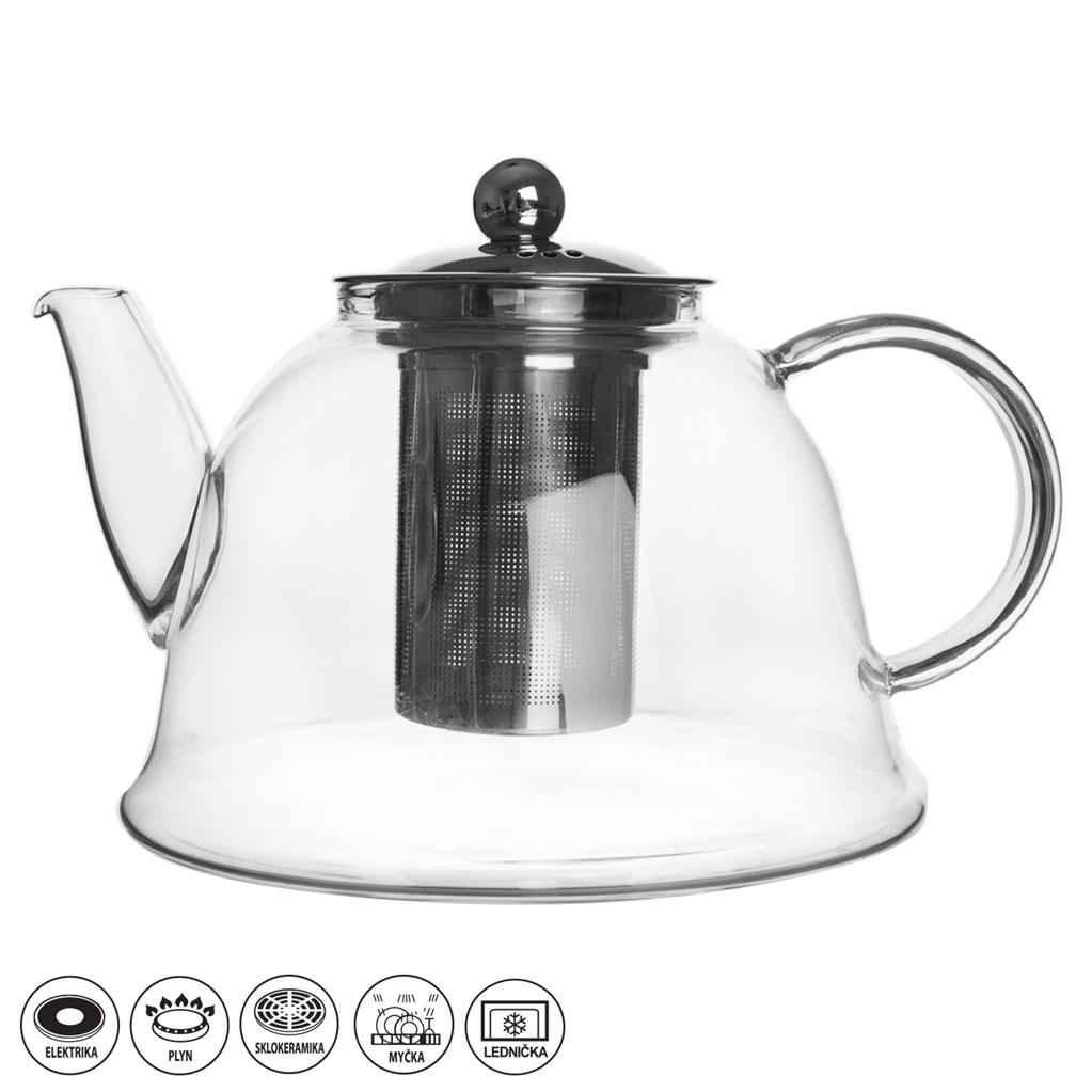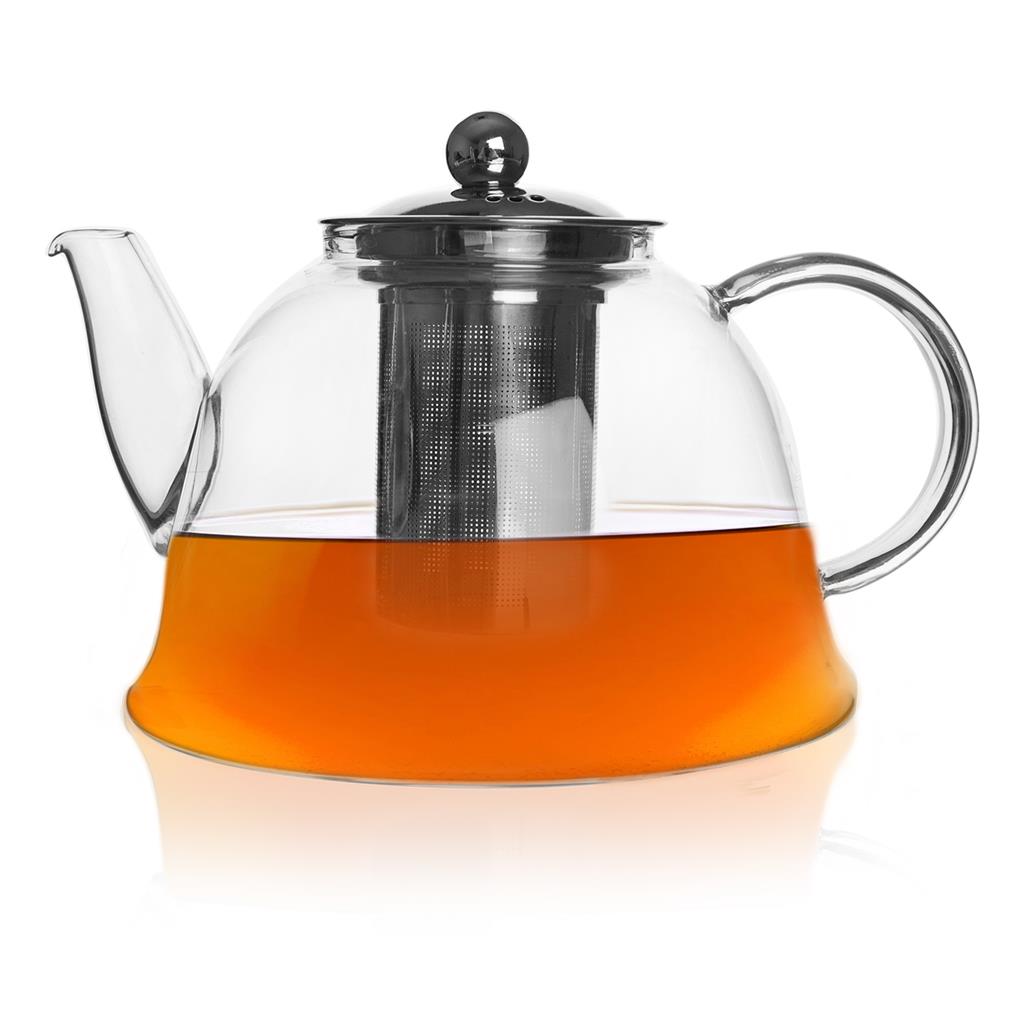 Ak uprednostňujete čaj pred kávou alebo jednoducho máte chuť pripraviť si voňavú špecialitu zo zeleného, čierneho či bieleho, bylinkového alebo ovocného je kanvica z odolného skla, ktorá zároveň poslúži i ako čajník na servírovanie. Husté sitko filtra neprepustí pevné čiastočky sypaných čajov, ani lístky sušených byliniek. Tip: vyskúšajte zaliať zmes drobného ovocia v sklenom pohári vlažným čajom, prípadne doplňte kockami ľadu. Je vhodná na použitie na všetkých typoch sporákov: plynovom (použite rozptyľovač plameňa), elektrickom i sklokeramickom. Kanvicu môžete použiť pri stolovaní i ako čajník alebo nádobu na limonády, malinovky a ovocné či zeleninové šťavy. Disponuje praktickým uchom. Ak si želáte podávať nápoje chladené, spokojne ju umiestnite do chladničky. Materiál: borosilikátové sklo – odolné teplotám od -20°C do +180°C, plast, nerez. Rozmery: objem 1,65 l, priemer 17,5 cm, výška 11/14 cm
