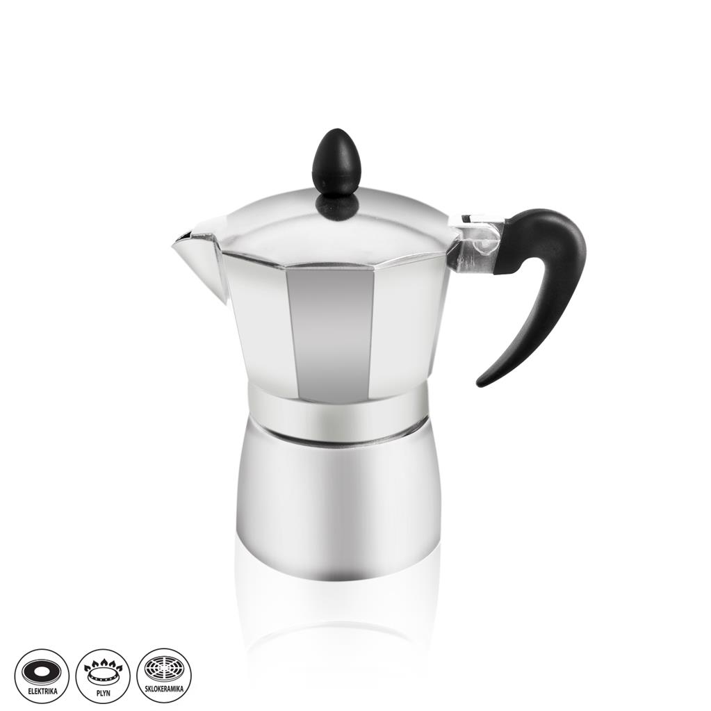 Kávovar z kvalitného hliníka, ktorý je vhodný na použitie na elektrickom, plynovom i indukčnom sporáku.