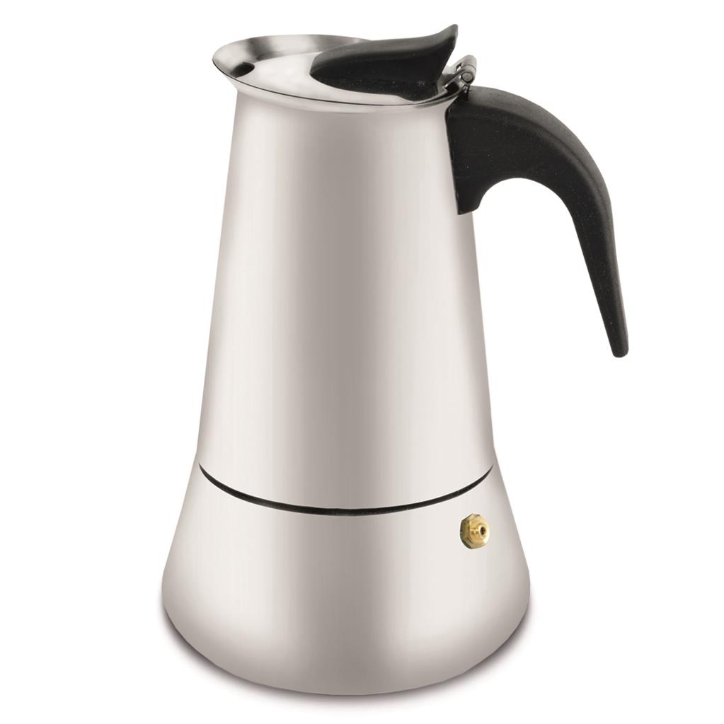 Kávovar z nerezu na prípravu espressa, ktorý je vhodný na použitie na elektrickom, plynovom sporáku. Nepoužívať na indukčné varné dosky.