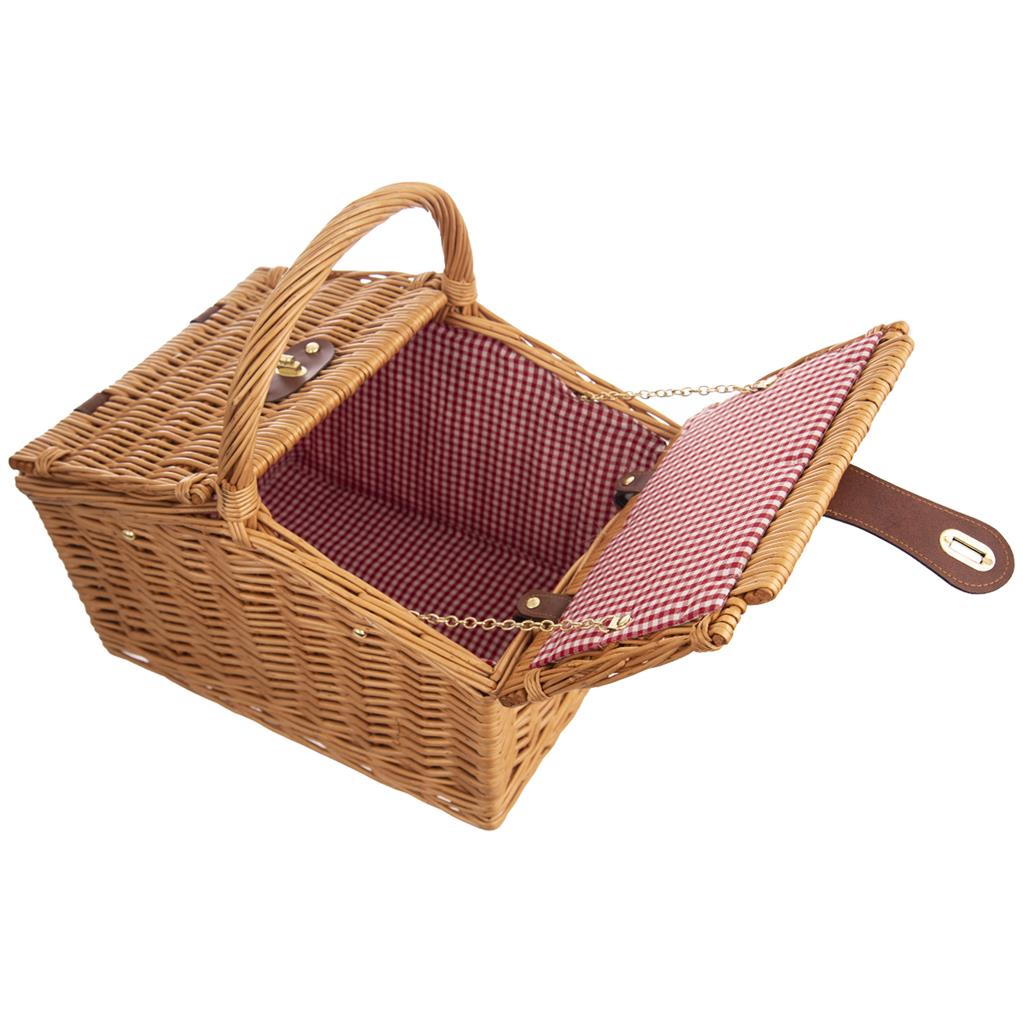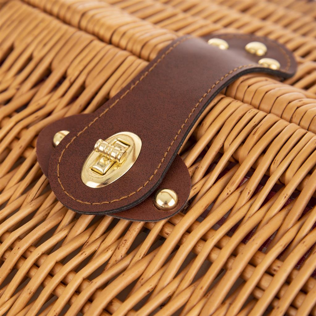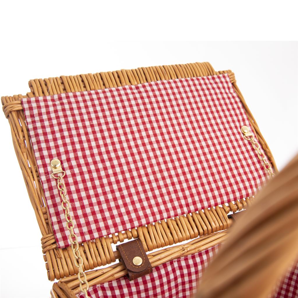 Prútený kôš je z vŕbového prútia a môžete si dopriať piknik v tráve. Môžete ho využiť aj na zber ovocia, zeleniny, húb a byliniek. Užijete si skvelé chvíle s rodinou a s priateľmi. Má praktické ucho na prenášanie a otváranie z oboch strán. Je to ručná práca, s koženkovými prvkami a sponou na zapínanie. Zloženie: vŕbové prútie, koženka, kov, textil – 60% bavlna, 40% polyester.