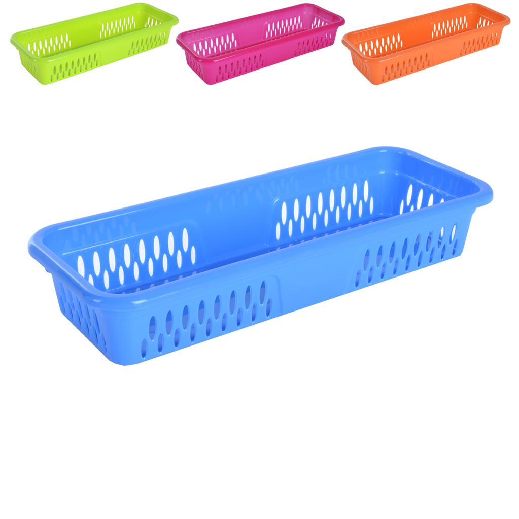 Plastový obdĺžnikový košík bez úchytiek využijete na usporiadanie drobností v kúpeľni, v kuchyni, v detskej izbe, v pracovni…. Je vyrobený z plastu, úchytky sú tiež plastové, je vyrobený vo viacerých farebných prevedeniach, je to assort farieb. Košík vám pošleme podľa dostupnosti farby na sklade.