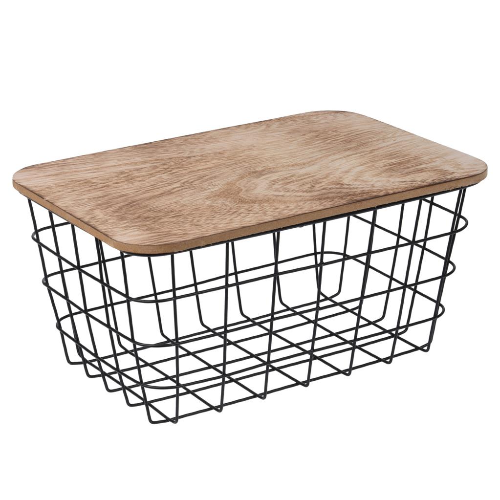 Drôtený košík s dreveným viečkom je vhodný na uskladnenie ovocia či zeleniny. Doska nám môže poslúžiť na krájanie. Je veľmi praktický a ľahký. Vhodný doplnok do každej domácnosti. Materiál: kov, drevo. Rozmery: 31,5×21,5×15,5 cm.
