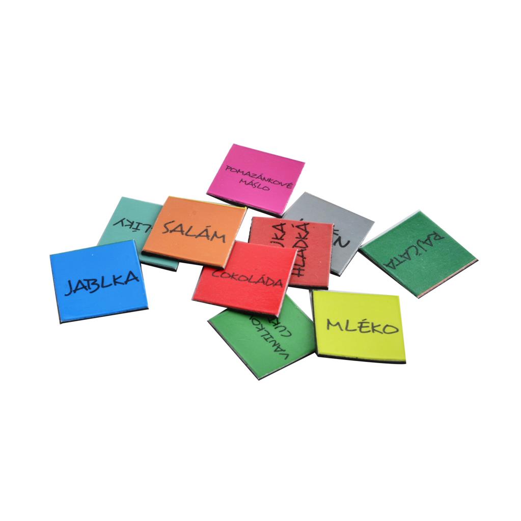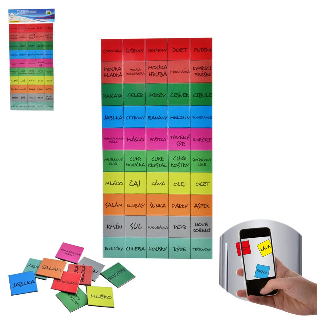Pomocou sady magnetiek s názvami potravín si na chladničke alebo inej kovovej ploche jednoducho vytvoríte súpis všetkého, čo vám v kuchyni chýba.