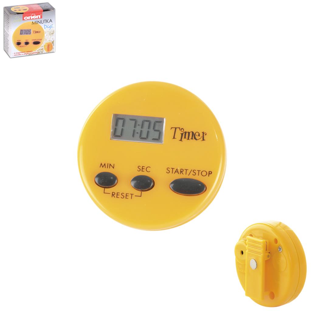 Táto kuchynská digitálna minútka funguje ako časomiera – odpočítava nastavený čas alebo ako stopky – počíta čas. Upozorní vás na potrebu skontrolovať pečúci sa múčnik alebo odstaviť polievku. Kľudne odbehnite do vedľajšej miestnosti – jej zvuk vás upozorní na potrebu vrátiť sa do kuchyne, keď to bude potrebné. Jednoduchá manipulácia. Materiál: plast. Klip na zadnej strane – možnosť pripevnenia. Napájanie na 1x LR41 (je súčasťou). Rozmery: priemer 5 cm, výška 2 cm.