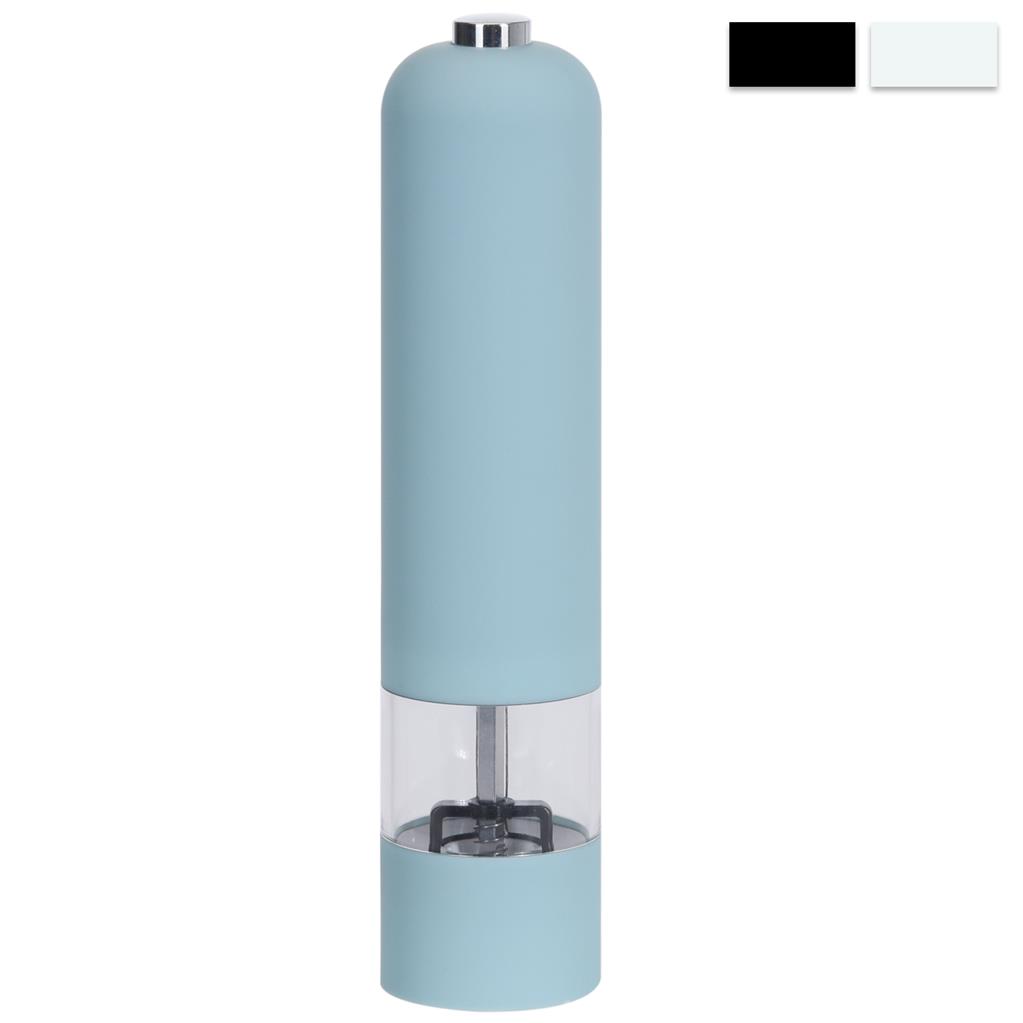 Mlynček na korenie a soľ plastový s elektrickým pohonom je veľmi praktický aj tým že má LED osvetlenie. Je napájaný 4 kusmi 1,5 V batérii AA (nie sú súčasťou balenia). Elegantný tvar sa bude veľmi dobre vynímať na každom stole. Práca s ním je veľmi jednoduchá a rýchla. Oceníte ho či už pri príprave jedál, alebo samotnom stolovaní. Variabilita nastavenia hrubosti mletia. Rozmery: priemer 5 cm, výška 22 cm.