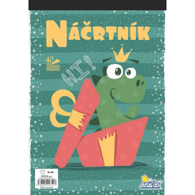 Náčrtník N44, A4, 40 listov z bezdrevného papiera. Hmotnosť: 90 g/m2. Možnosť zakúpenia väčšieho, 10 kusového balenia. Formát: A4, počet: 1 kus.