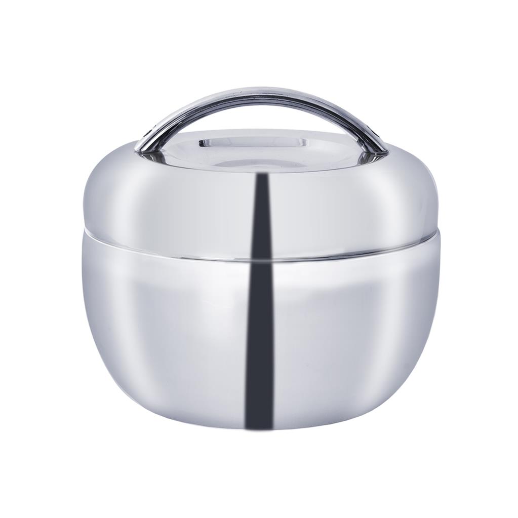 Nerezová termomisa s viečkom je vhodné ju použiť v domácnosti aj na cestách. Vďaka dvojitej stene umožňuje vášmu pokrmu udržať si konštantnú teplotu po dlhú dobu. Má izolačné vlastnosti. Využijete ju pri servírovaní alebo na uchovávanie teplých pokrmov. Môžete v nej pokrmy aj prenášať čo vám umožnuje praktické ucho na závite. Na povrchu je hladká a ľahko umývateľná a je jednoducho prenosná. Vo vnútri je nerezová mištička a môžete uchovávať potraviny aj oddelene. Objem: 0,8 litra