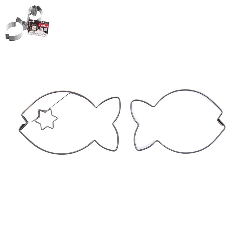 Nerezové vykrajovačky v tvare ryby, vhodné na vykrajovanie sladkých medovníkov. V balení je vykrajovacia formička bez stredu a so stredom. Materiál: nerez. Rozmery: 4,7×3,1 cm.
