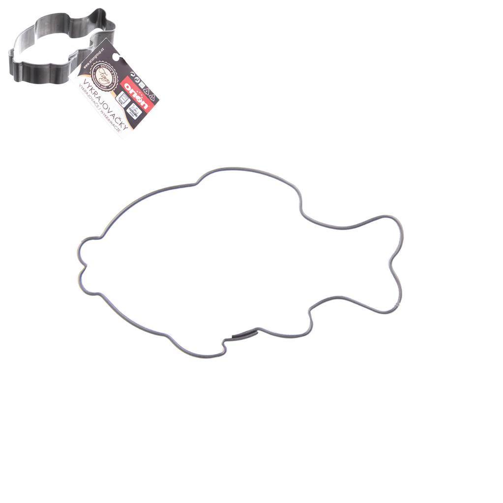 Nerezová vykrajovačka v tvare ryby, vhodná na vykrajovanie sladkých medovníkov. Materiál: nerez. Rozmery: 5,4×3,3 cm.