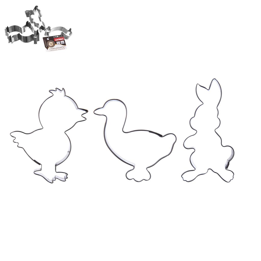 Nerezové vykrajovačky rôznych symbolov Veľkej Noci, vhodné na vykrajovanie sladkých veľkonočných koláčikov. Ich milým tvarom sa potešia dospelí ale najmä deti. Sada obsahuje 3 ks zvieratiek. Materiál: nerez. Rozmer: dĺžka 5-6,5 cm.