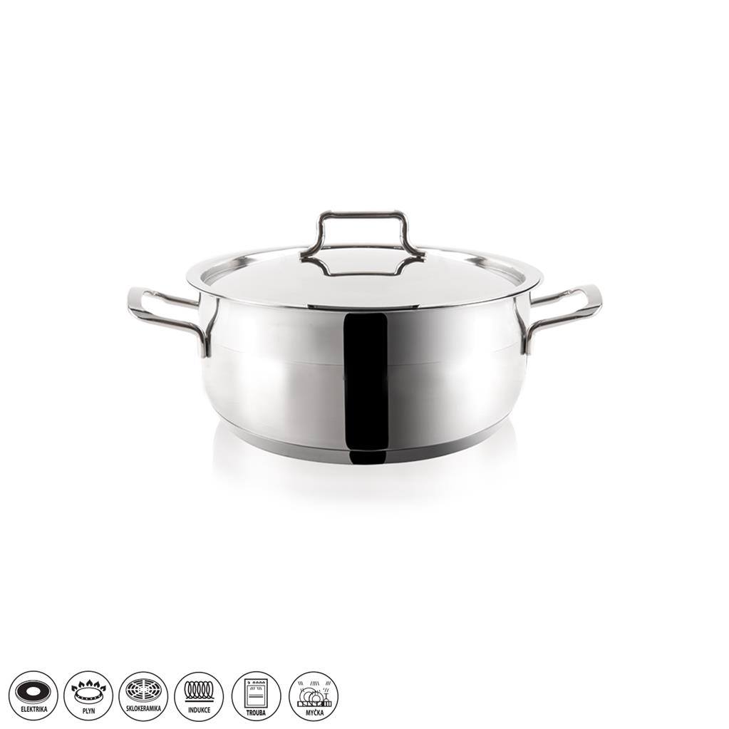 Nerezový kastról s pokrievkou s objemom 1,2l, priemerom 16cm a výškou 7cm. Výhodou nerezových kastrólov je ich technológia a kvalitné materiály, ktoré sú vhodné pre každú domácnosť a sú ideálnou cestou ku zdravej, diétnej, ekonomickej a estetickej príprave pokrmov. Kastról je vyrobený z naozaj vysoko kvalitnej nerezovej ocele. Tepelný zdroj treba vypnúť s predstihom, pretože naakumulovaná energia podá teplo ďalej do nádoby. Kastról je vhodný na všetky typy spotrebičov a môže sa použiť aj v rúre. Očistiť je ho možné aj v umývačke riadu. Nerezový kastról vám ponúka varenie bez tukov, bez straty vitamínov a minerálov obsiahnutých v potravinách. Zachová prirodzenú chuť jedla. Vonkajší aj vnútorný povrch kastróla je vysoko leštený, takže zabraňuje tomu aby sa na ňom usadzovali nečistoty a zaručuje dokonalú údržbu. Sendvičové dno s termoakumulačnými vlastnosťami zaručuje rýchle a ekonomické varenie s výraznou úsporou energie.
