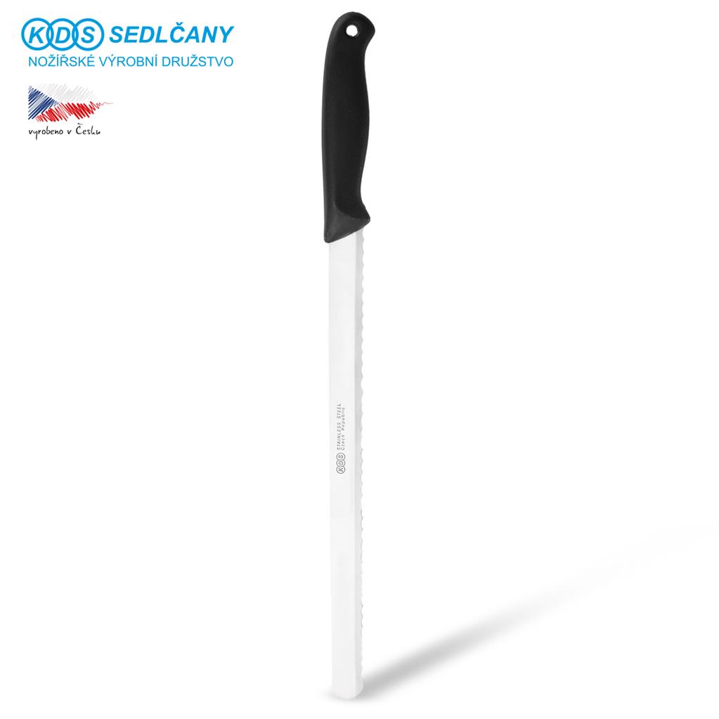 Nôž tortový s vrúbkovaným ostrím, KDS 11, oceľovo plastový, 27,5 cm