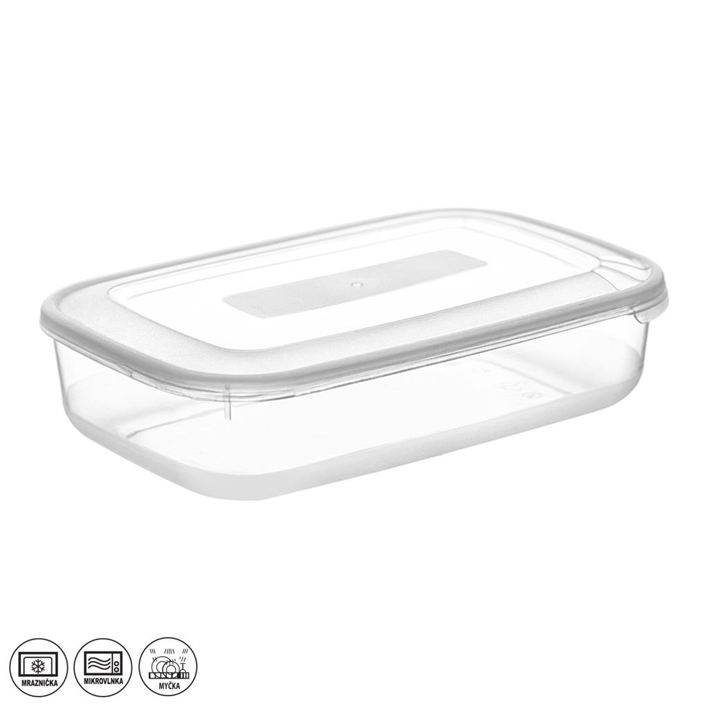 Plastová dóza v tvare obdĺžnika je vhodná na uskladňovanie potravín, či prihrievanie jedál v mikrovlnnej rúre.