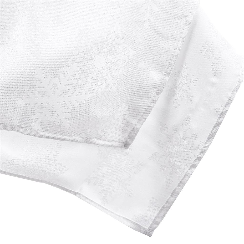 Vianočný elegantný polyesterový obojstranný obrus DAME, s jemným plasrtickým dekorom snehových vločiek, 150×220 cm.