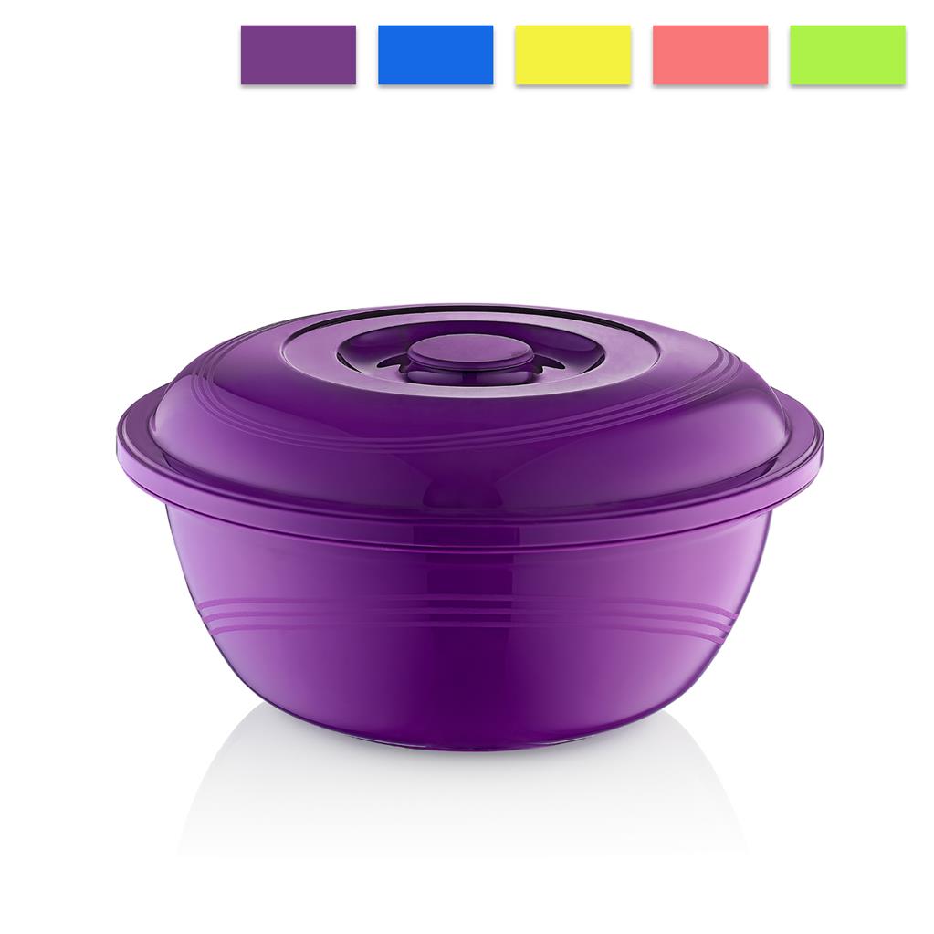 Plastová dóza na portaviny s vekom. Vhodná na uskladnenie potravín a hotových jedál. Materiál: plast. Rozmery: priemer 31cm, výška 16,5cm, objem 6l.