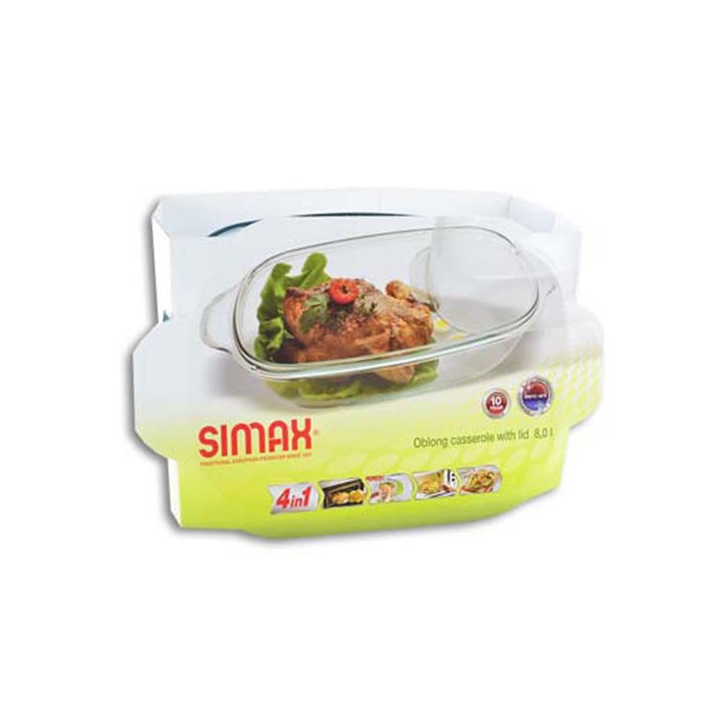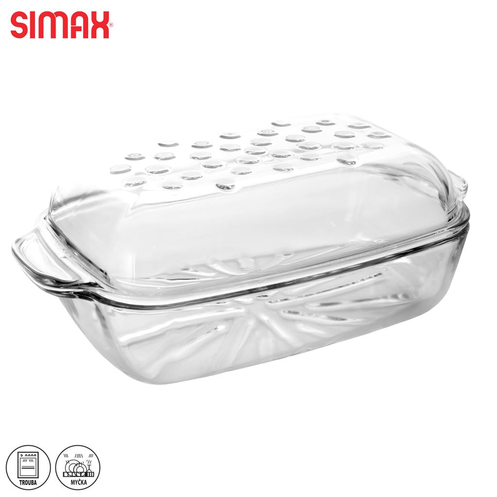 Pekáč je vyrobený z tvrdého borosilikátového skla, ktoré je mechanicky aj teplotne veľmi odolné (-40°c až +300°C). Dlhá životnosť a hygienická nezávadnosť je jeho výhodou. Ľahko sa udržiava pretože jeho povrch je hladký a bezpečný. Pekáč SIMAX je variabilný a oba diely sa dajú použiť samostatne. Je určený na prípravu jedál vo všetkých typoch kuchynských rúr, vrátane mikrovlnnej a teplovzdušnej. Dôležitá je zásada pozvoľného ohrievania aj ochladzovania pekáča, prilievať odporúčame iba vlažnú vodu nie studenú. Neodporúčame klásť nádoby na zdroj tepla prázdne ani na studenú alebo vlhkú podložku. Pri manipulácii používajte kuchynské rukavice, aby sa predišlo popáleninnám. Rozmery: objem 3,2 a 2,3 l, vonkajšie rozmery spodný diel: 36,5x21x8 cm, vrchný diel 36,5x21x5,5 cm, celková výška 13,5 cm, vnútorné rozmery 30×20 cm. Je vhodný do úmývačky riadu.