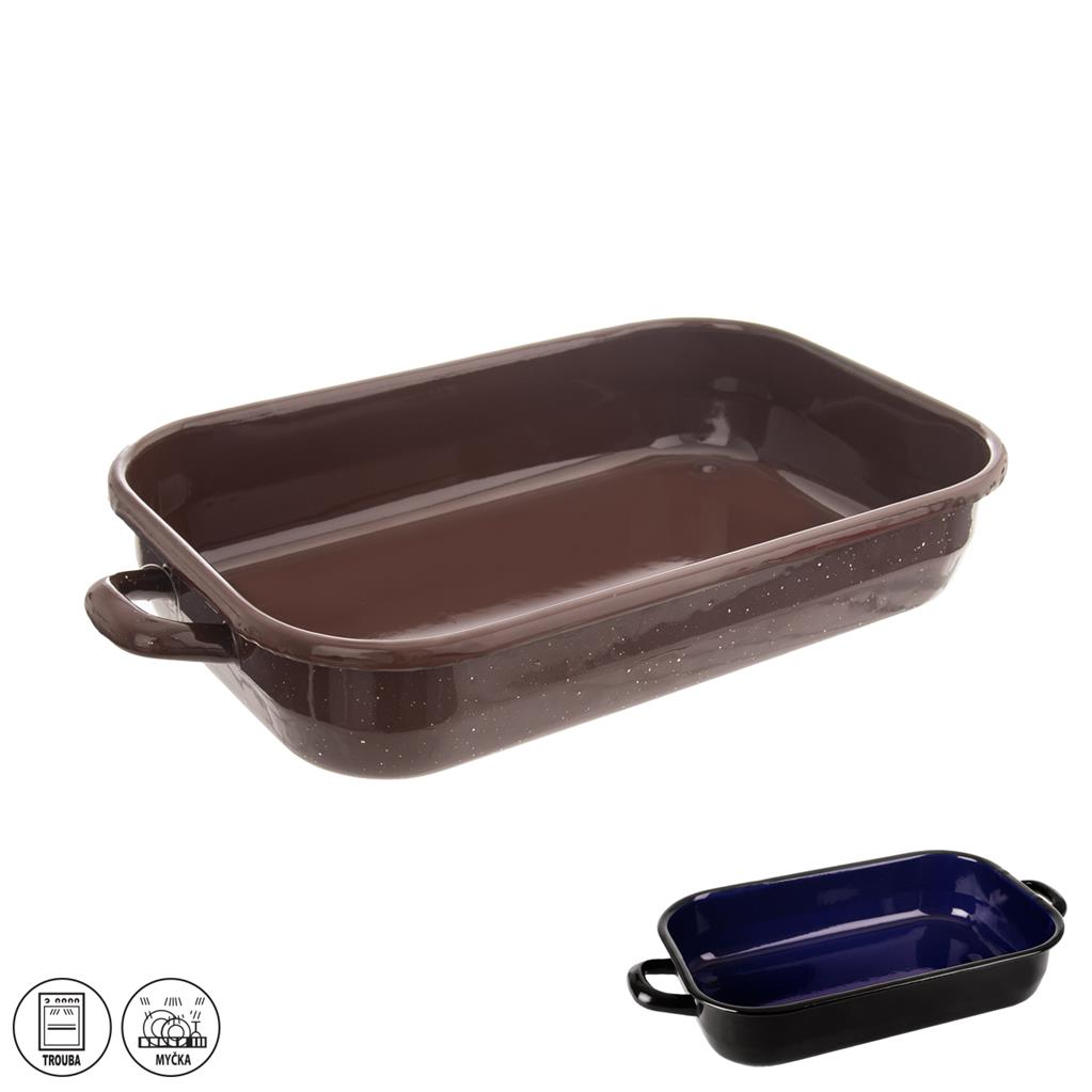 Pekáč smaltovaný s ušami. Tradičná pomôcka pri príprave jedál. Vhodný na prípravu mäsa, rýb, zeleniny, ale aj múčnikov a maškŕt. Je nenáročný na údržbu, vhodný aj do umývačky riadu. Rozmer: bez uší 27,5 (s ušami 34,5) x 18×6,5 cm.