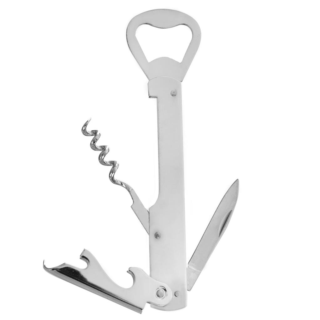 Odporučiť Otvárač na víno TETA je vyrobený z nehrdzavejúcej ocele. Je to multifunkčné náradie, ktoré Vám uľahčí otváranie fliaš s rôznymi uzávermi. Navyše obsahuje nožík, ktorý sa dá využiť vždy keď ho budeme potrebovať. Je veľmi praktický a nezaberie veľa miesta. Materiál: nerez. Rozmery: dĺžka 14 cm.