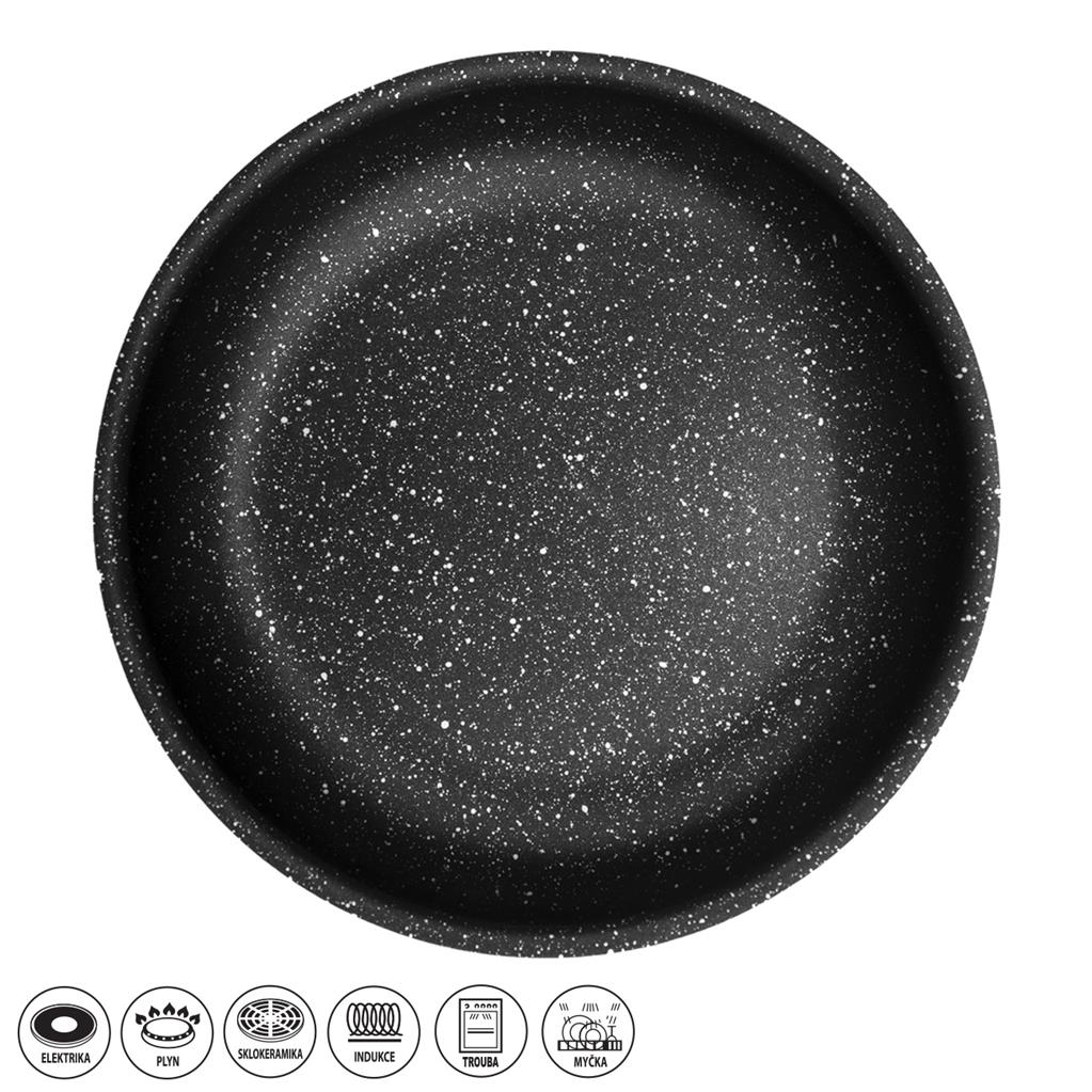 Panvica s veľmi kvalitným nepriľnavým povrchom PFLUON GRANIT, vďaka ktorému sa pripravované jedlo nepripeká. Vhodná na varenie, smaženie, dusenie, opekanie a zapekanie s minimálnou potrebou tuku.