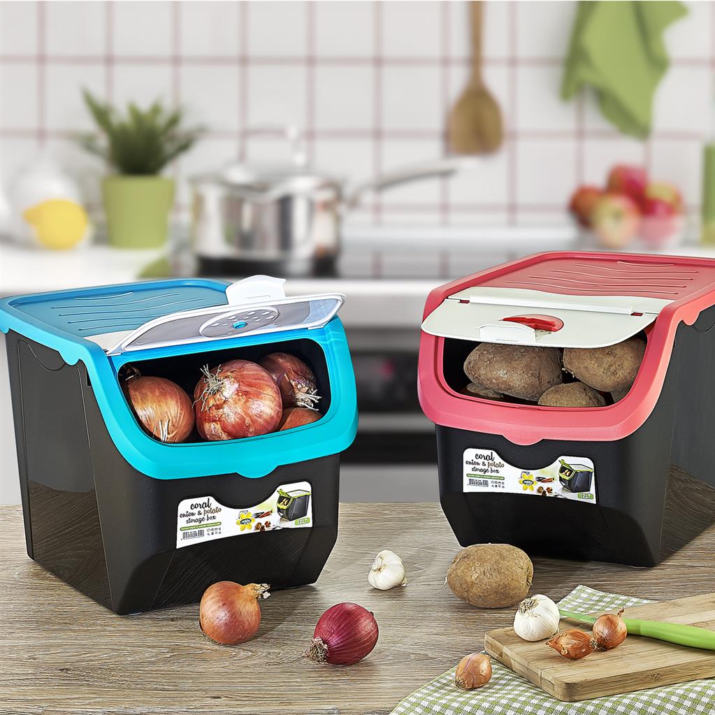 Plastový box s regulovateľným vetraním je ideálny na skladovanie cibule, zemiakov, aj iných plodín. Plastové veko sa otvára na klip, ktoré ľahko odklopíte a vyberiete potrebné množstvo zeleniny alebo ovocia. Box je stohovateľný a na dne sú pripevnené protišmykové podložky. Je vyrobený z plastu, veko je vyrobené vo viacerých farebných prevedeniach, je to assort farieb. Tovar vám pošleme podľa dostupnosti farby na sklade. Objem: 12 l