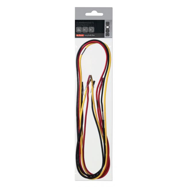 Sada gumičiek Herlitz my.book Flex, A4, čierna, žltá, červená. Sada obsahuje vymeniteľné gumičky pre uzatváranie náplní v zošitoch flex. Formát: A4, mix farieb.
